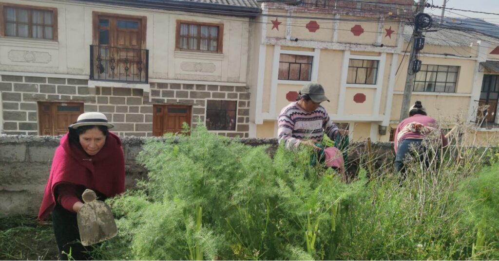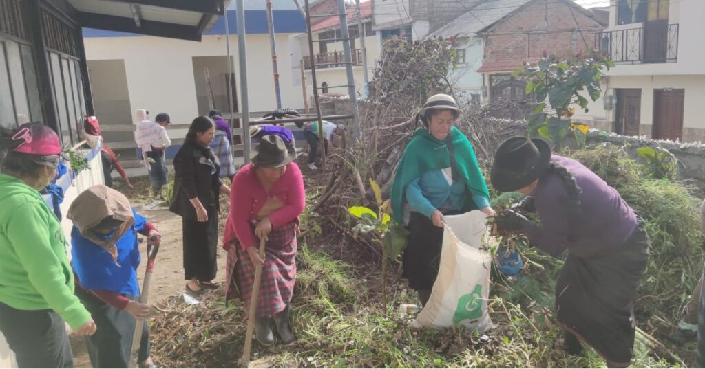 Padres, madres de familia, estudiantes y tutores del Campo de Acción, colaboraron en la limpieza del terreno para iniciar con el huerto escolar de la Unidad Educativa Víctor Proaño Carrión, en la parroquia Calpi.