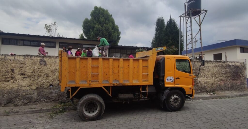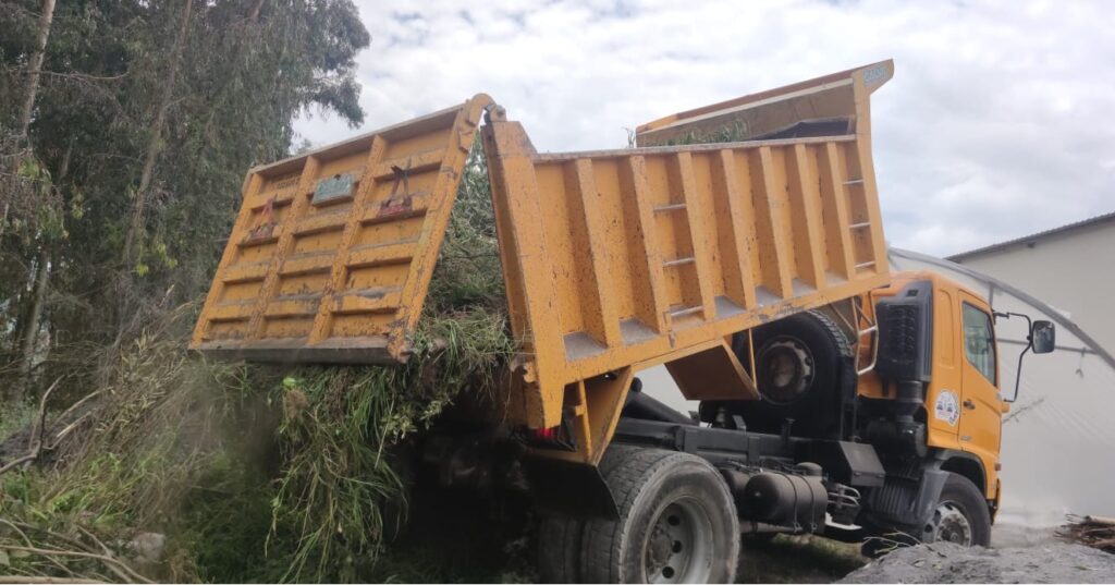 Gracias al apoyo de la Presidenta del GAD Parroquial Calpi, Lourdes Guamán, se contó con la volqueta para el traslado de los desechos orgánicos y tierra a la fábricas de abonos y bioinsumos.