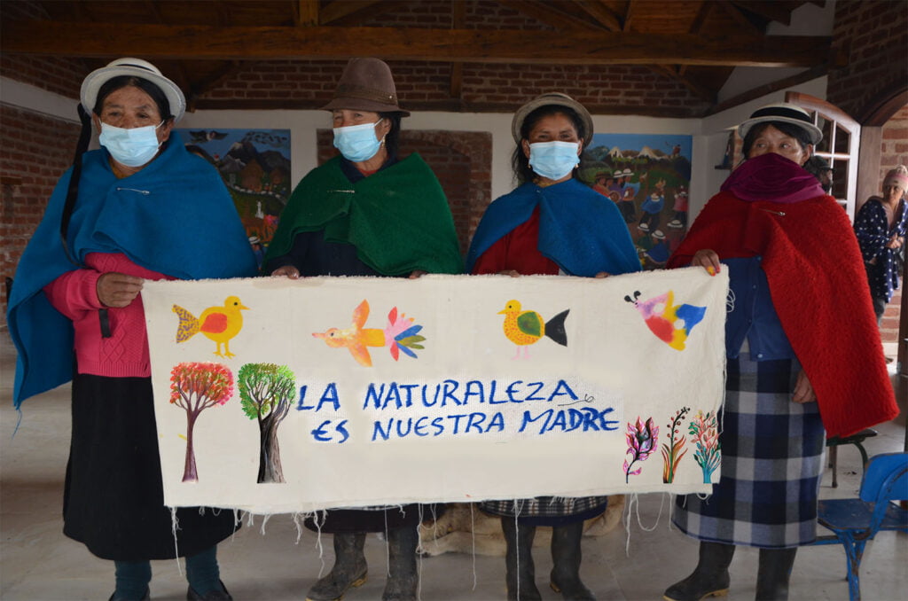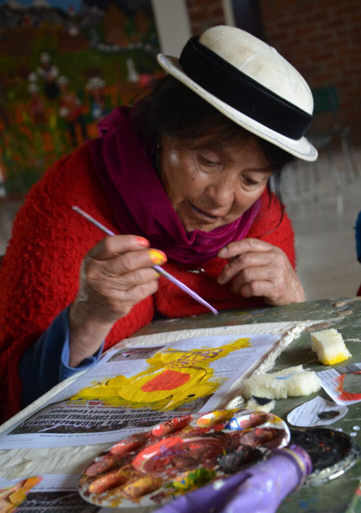 Mujeres pintando en agradecimiento de la Naturaleza-Pachamama