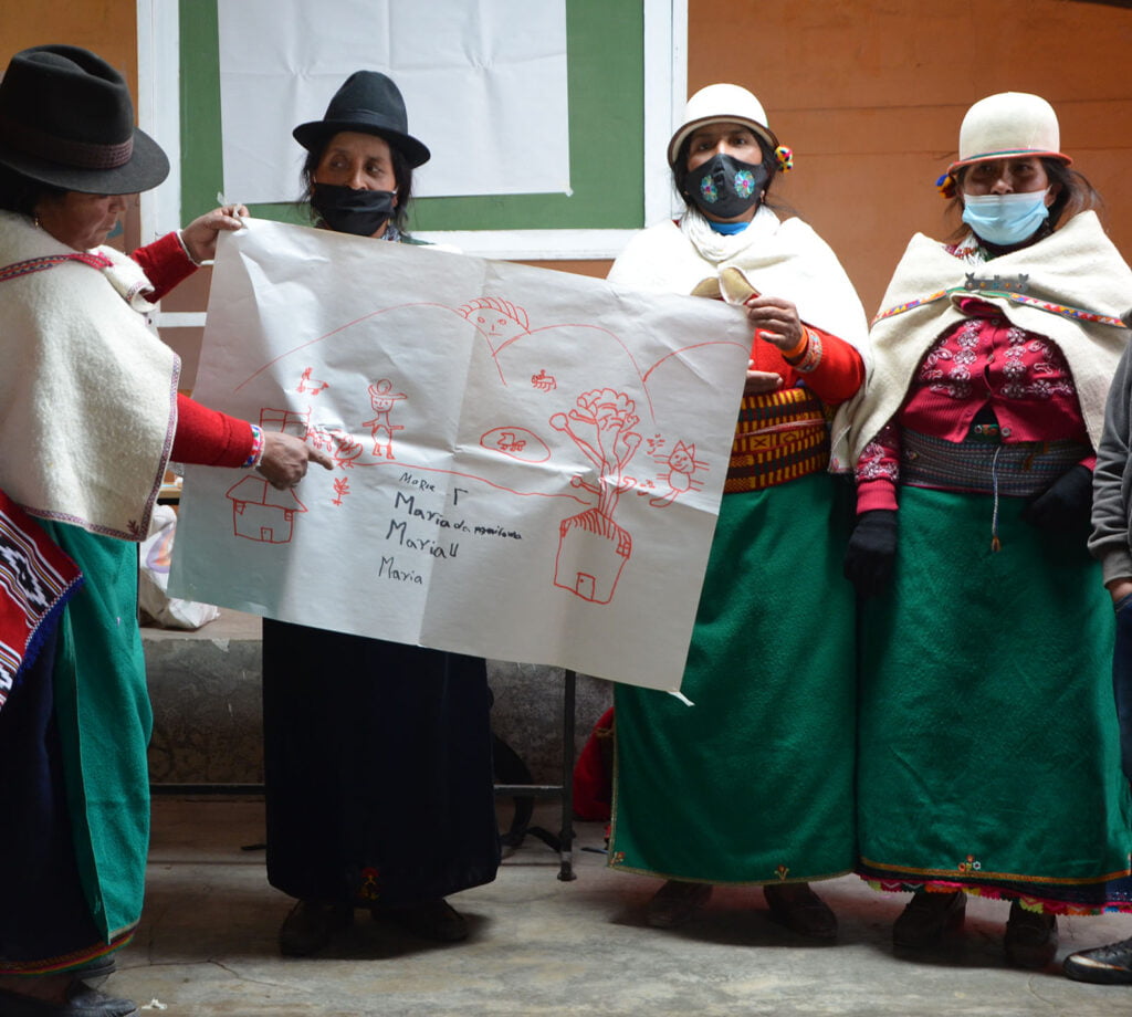 El dialogo se realiza en los espacios de encuentro que tienen las mujeres. Por ejemplo, en esta imagen, estan dialogando y preparando la lana de llama.