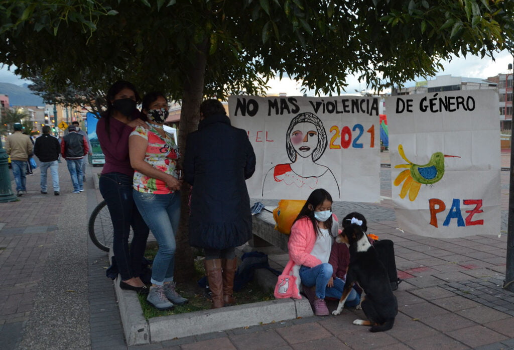 Intervenci{on en el espacio público para denunciar la violencia de Género.